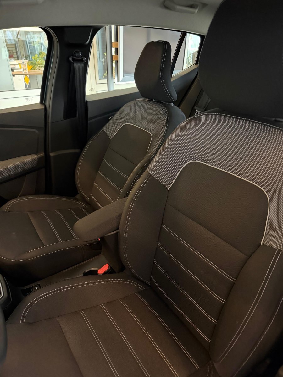 Sonderausstattung Winterpaket Sitzheizung für Vordersitze - Klimaautomatik Sicherheits-Paket- Außenspiegel mit Totwinkel-Assistent- Einparkhilfe vorn und hinten- Rückfahrkamera- Fahrassistenz-System: Totwinkel-Assistent 16-Zoll Leichtmetallfelgen Metallic-Lackierung Serienausstattung Airbag Beifahrerseite Airbag Fahrerseite Anti-Blockier-System (ABS) Armlehne für Fahrersitz Audiosystem: Radio mit DAB+, Touchscreen-Farbdisplay (Media-Display) Touchscreen-Farbdisplay (8,0 Zoll) Automatische Fahrlichtschaltung / Lichtsensor Außenspiegel elektr. verstell- und heizbar Außenspiegel Wagenfarbe Bordcomputer Eco Mode (Fahrmodusschalter) Elektron. Stabilitäts-Programm (ESP) Fahrassistenz-System: Berganfahr-Assistent (HSA) Fahrassistenz-System: Notbrems-Assistent Fahrassistenz-System: Sicherheitssystem mit automatischem Notruf (ERA GLONASS / eCall) Fensterheber elektr. mit Impulsgeber links vorn Fensterheber elektrisch hinten Fensterheber elektrisch vorn Geschwindigkeits-Begrenzeranlage Geschwindigkeits-Regelanlage (Tempomat) Getriebe Automatik stufenlos - CVT Isofix-Aufnahmen für Kindersitz an Rücksitz Karosserie: 5-türig Kombiinstrument mit Monochrom-Display 3,5 Zoll Kopf-Airbag-System seitlich Kopfstützen hinten mechan. verstellbar (3 Stück) Kühlergrill mit Emblem Lenkrad (Leder-Optik) Lenksäule (Lenkrad) höhenverstellbar Lenksäule (Lenkrad) längsverstellbar Modellpflege Motor 1,0 Ltr. - 67 kW TCE KAT Nebelscheinwerfer Otto-Partikelfilter (GPF) Reifen-Reparaturset Reifendruck-Kontrollsystem Rücksitzbank (2.Reihe) geteilt, klappbar (1/3-2/3) Schadstoffarm nach Abgasnorm Euro 6e Schaltpunktanzeige Scheinwerfer Eco-LED Seitenairbag vorn Servolenkung elektrisch Sitz vorn links höhenverstellbar Sitzbezug / Polsterung: Stoff Expression Start/Stop-Anlage Stoßfänger Wagenfarbe Tagfahrlicht LED Telefonhalter und USB-Anschluss Türgriffe außen Wagenfarbe Zentralverriegelung mit Fernbedienung